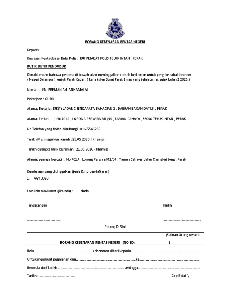 Borang kebenaran rentas negeri pdf 2021. Kawasan Pentadbiran Balai Polis. Muat turun borang kebenaran rentas negeri di bawah.